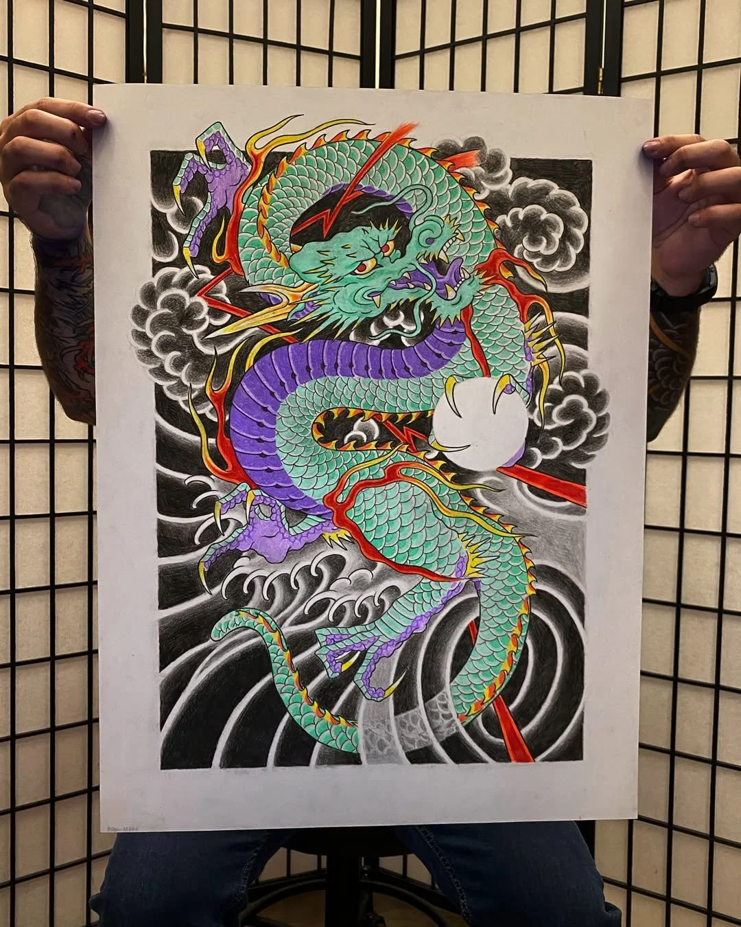 With 11 years of experience, I work out of a private studio in South Florida. I specialize in Japanese traditional tattoos — particularly dragon designs — but I welcome custom ideas in all styles.